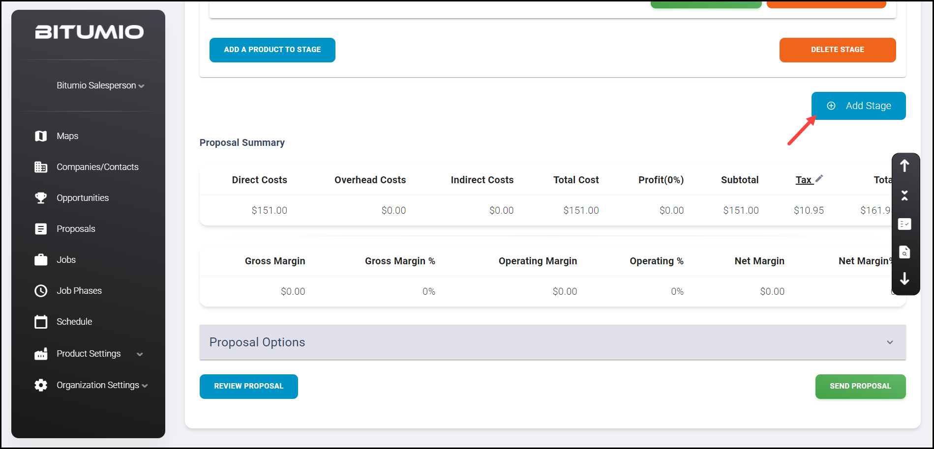 8. Once all the Products are added to a Stage, additional Stages can be added to the Proposal by clicking the