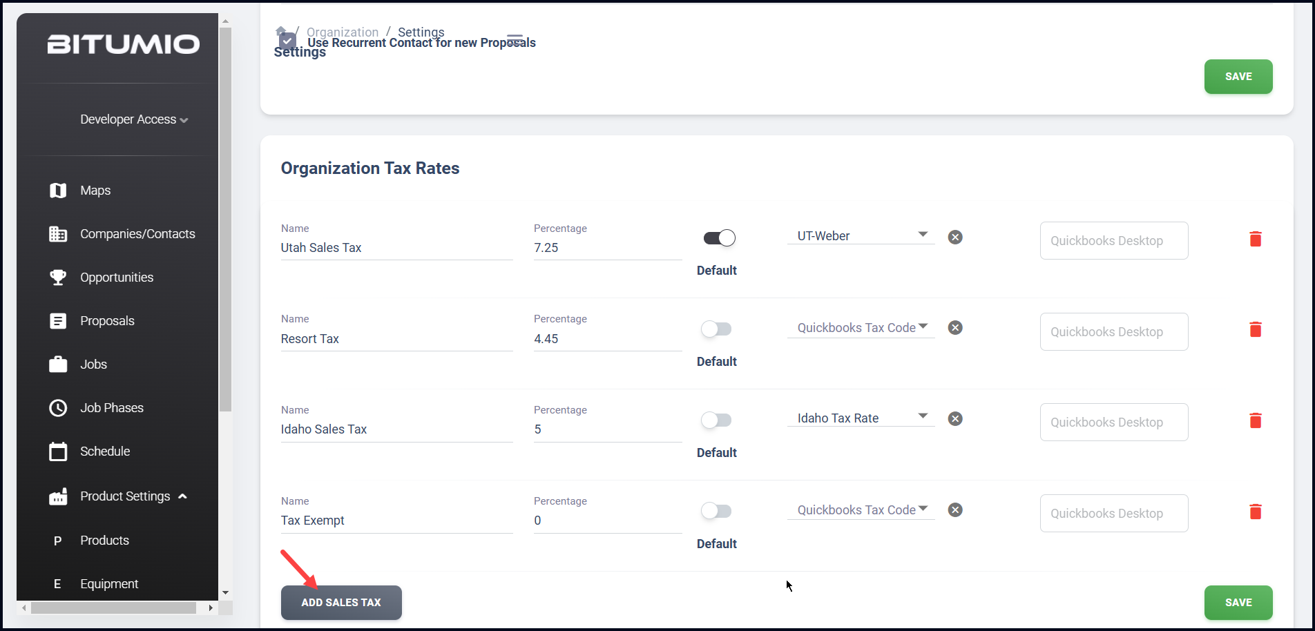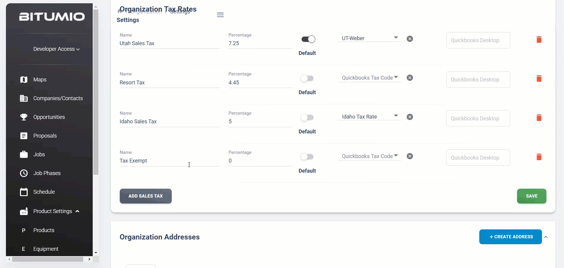 7. Moving further, the Organization Tax Rates grid lets you configure the tax rates set for the organization.